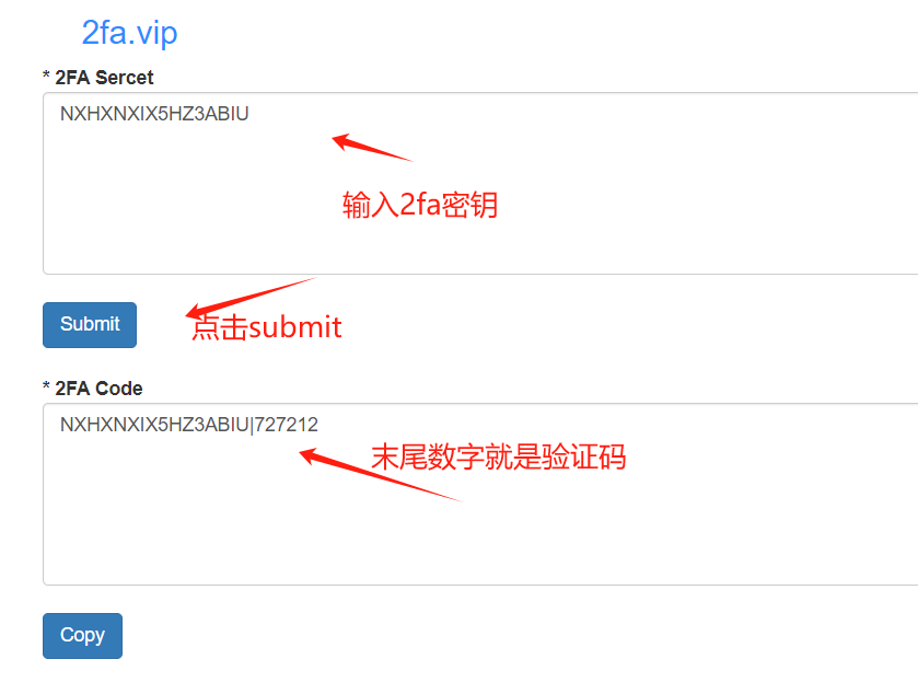 用我发你的 2fa 密钥 到这个网址 https://www.2fa.vip/